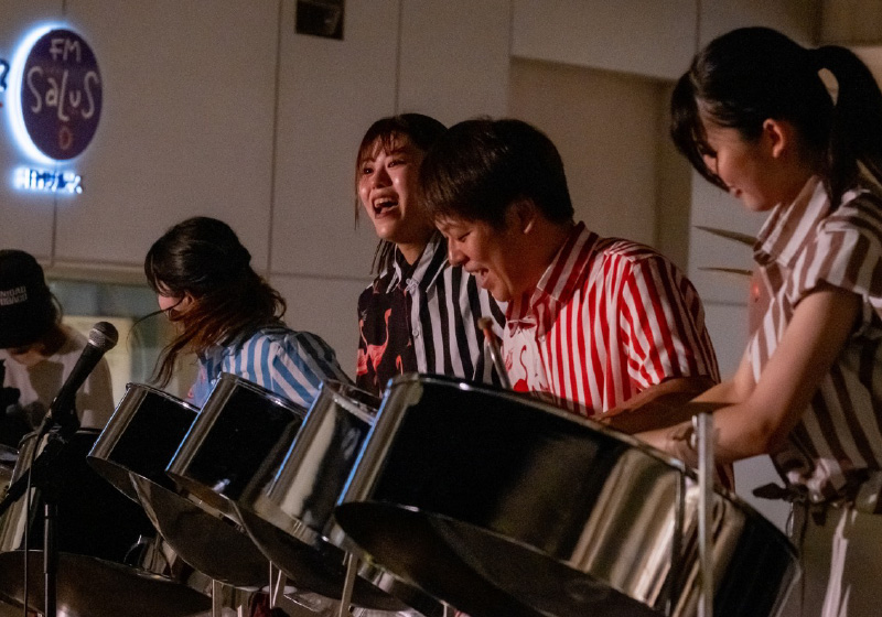 カリブ海最南端の島国トリニダード・トバゴ共和国で生まれた20世紀最後にして最大の発明楽器と言われる「スティールパン」。ドラム缶から作られた音階のある打楽器で独特の倍音の響きを持った音色が特徴。英国の統治下の1936年に産声を上げ、1960年トリニダード・トバゴ独立後欧米先進国へと広まり、ジョンレノンやビーチボーイズなどの楽曲にも取り入れられて行きました。そんなスティールパンをただの「南国の珍しい楽器」として紹介するのではなく、カリビアンサウンドの解放感、ブラックミュージックのグルーヴ、そして日本ならではのポップな感性を融合させた新たな鼓動を生み出すべく結成されたユニットです。演奏者と観客が一体となり音楽の楽しさを共有する公演は各地で大好評です。