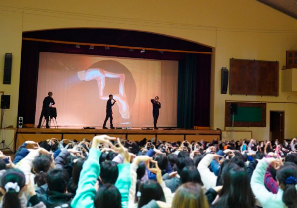 テレビや海外ショーで披露した息のあったパフォーマンス。光の演出・映像演出で、体育館でこんな表現ができるの!?と大好評。学校さんの特別な機材準備も必要ございません。
