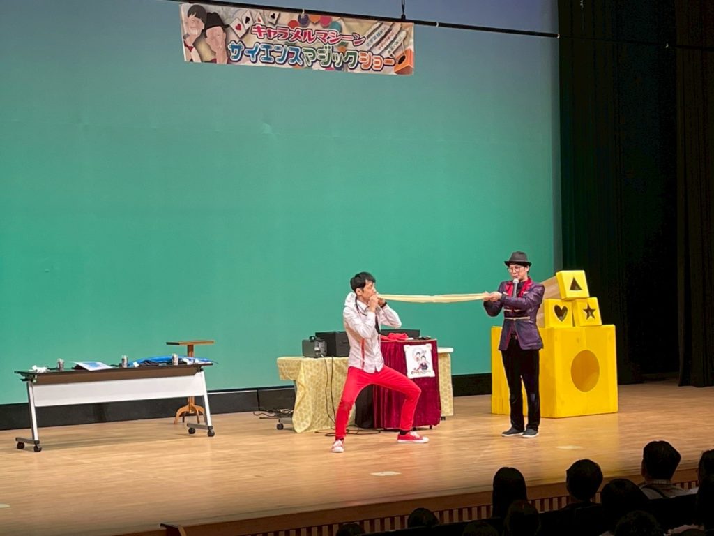 ホーム > TOPICS > 「キャラメルマシーン」千葉県鎌ケ谷市公演 「キャラメルマシーン」千葉県鎌ケ谷市公演 9月7日(日)昨年に引き続き鎌ヶ谷にキャラメルマシーンがやって参りました。 なんと半分以上のかたがリピーターでございました。 ペンライトを振って応援(?)して下さるお客様も・・・ キャラメルマシーンは お子様からお年寄りまで幅広くうける コメディーマジックコンビ!さすがです!! キャラメルマシーンはこちらから! ←前の記事 次の記事→