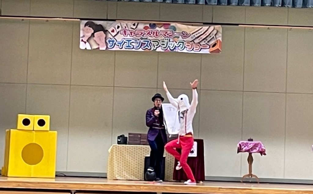ホーム > TOPICS > キャラメルマシーンの「サイエンスマジックショー」埼玉県和光市・特別支援学校公演 キャラメルマシーンの「サイエンスマジックショー」埼玉県和光市・特別支援学校公演 11月28日にPTA主催の中高の芸術鑑賞会が本校で行われました。 今回の演目は「キャラメルマシーンのサイエンスマジックショー」でした。 明るく楽しいコメディマジックに子どもたちも思わず歓声が上がり 楽しい雰囲気の中終えることができました。 キャラメルマシーンはこちらから! ←前の記事 次の記事→